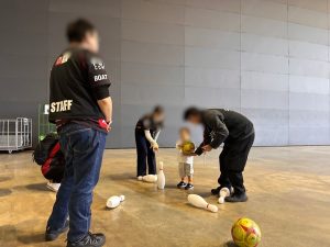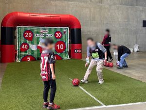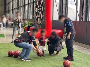 今回もB2Fインターセクション「ドーレくんひろば」で、キックターゲット・フットダーツ・サッカーカーリング・塗り絵など運営をさせていただきました。